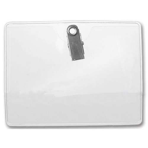 Premium Clear Vinyl Horizontal Badge Holder - Clip-On, Convention Size. Durable And Tear Resistant With Reinforced Edges. Easily Attaches To Clothing With A Rotating Bulldog Clip. Insert Size: 4" X 3"