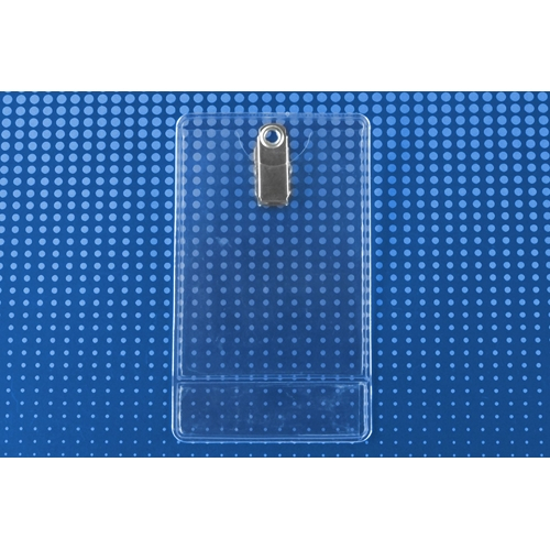 Premium Clear Vinyl Vertical Display Holder - Clip-On, Credit Card Size. Space At Bottom Of Holder For Either A Custom Imprint Or Insert. Durable And Tear Resistant With Reinforced Edges. Easily Attaches To Clothing With A Rotating Bulldog Clip. Insert Size: 2-1/4" x 3-3/8"