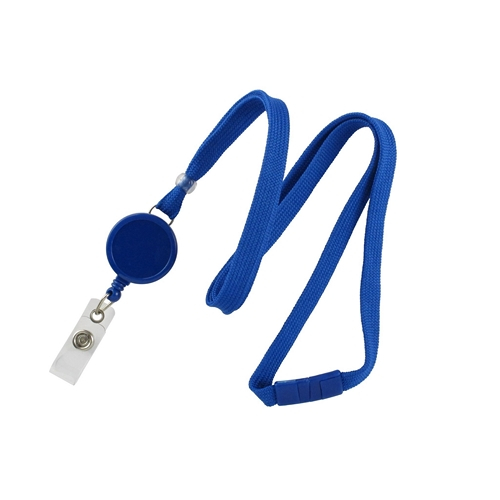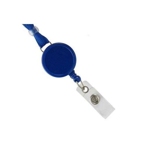 Royal Blue 3/8" Lanyard With Breakaway, Badge Reel And Strap. Badge Reel Gives Extended Reach For Easy Access Into A Building. Comes With A Clear Vinyl Strap And The Safety Breakaway Color Matches The Lanyard Color.