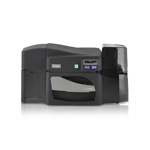 The Fargo DTC4500e is a full-featured PVC ID card printer from HID ideal for organizations printing a medium or large number of cards on a regular basis. It is a great solution for printing government ID credentials, student ID cards, corporate ID cards, membership cards and more. The Fargo DTC4500e uses dye sublimation and resin thermal transfer printing to create vibrant colors, clear images and sharp text, creating a professional look on every card. Edge-to-edge printing covers the majority of the face of a card, leaving a small white border around the edge. A variety of ribbon types work well with the DTC4500e, including fluorescent ribbons, overlay ribbons and holographic laminate ribbons. This model of the DTC4500e features the added convenience of ethernet connectivity. This allows the printer to be hooked up to a network and accessed by multiple users from a central location, making it a perfect solution for college card printing offices, corporate human resources offices and more. The Fargo DTC4500e is an upgradable printer that can grow as your needs grow. It is known as a "modular" printer, meaning optional add-on modules can be purchased to increase the printer's capabilities. Modules include a smart card encoder, single- or dual-sided lamination, a magnetic stripe encoder, a locking card hopper and more.