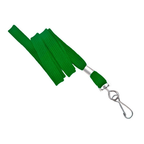 Green 3/8" Flat Non-Breakaway Lanyard With Swivel Hook. Flat Braid Polyester Material Has A 48 Thread Count For A Softer More Comfortable Fit. Includes A Metal Crimp As A Finishing Option.