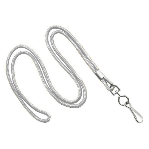 White 1/8" Round Non-Breakaway Lanyard With Swivel Hook. Comes With Crimp Finishing Option. Perfect For Short-Term Use And Most Economical Lanyard Choice.
