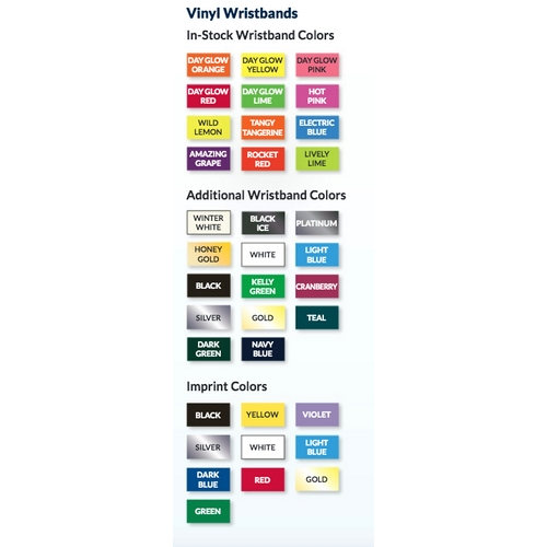 Perfect for multi-day use, the vinyl wristband features adjustable holes to suit various wrist sizes. A locking snap secures the wristband comfortably to the wearer, preventing wristband transfer and fraud. Durable and waterproof, vinyl wristbands can be customized. Select from multiple bright colors and several imprint colors.Note - actual wristband color may slightly vary than color shown in image.