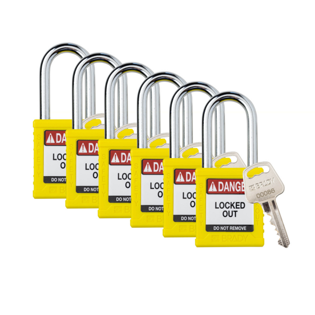 Brady SDPL-YLW-38ST-KA6 153463 Plastic Safety Lockout Padlock