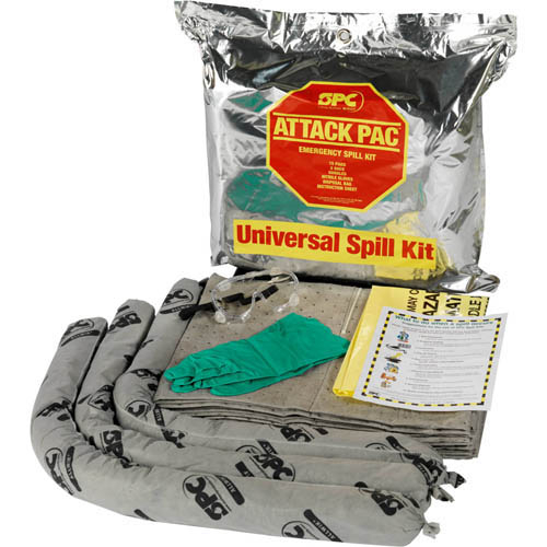 Attack Pac Portable Spill Kits are efficient, space-saving, single-use kits packed in puncture and UV resistant foil bags.