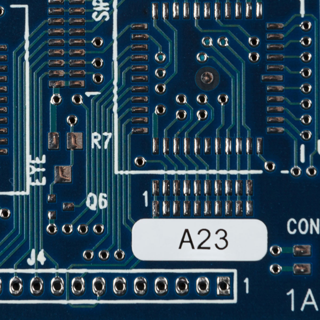 Static Dissipative Polyimide (B-717) withstands wave solder environments and multiple harsh washes for printed circuit board and electronic component preprocess labeling.