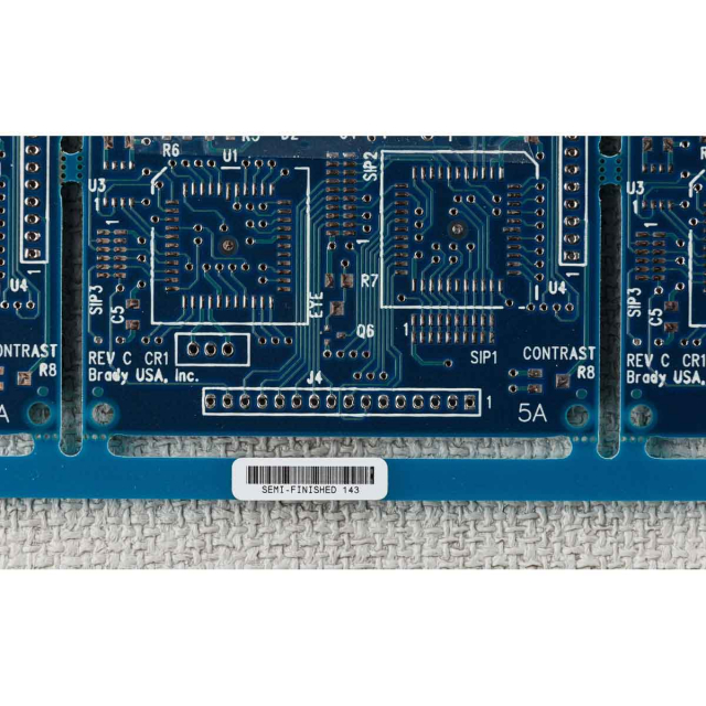 Static Dissipative Polyimide (B-719) withstands wave solder environments and multiple harsh washes for printed circuit board and electronic component preprocess labeling.