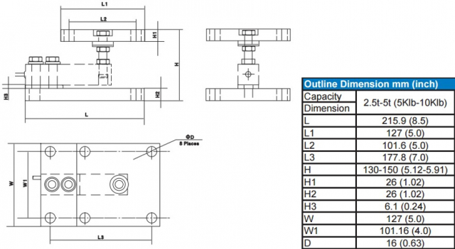 Weighing Module Kit with 3 B8D Load Cells, 10000lb / 4535kg per Each Load Cell