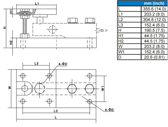Weighing Module Kit with 4 HM8 Load Cells, 20000lb / 9071kg per Each Load Cell