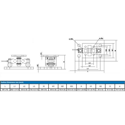 Weighing Module Kit with 4 H9C Load Cells, 40000lb / 18144kg per Each Load Cell