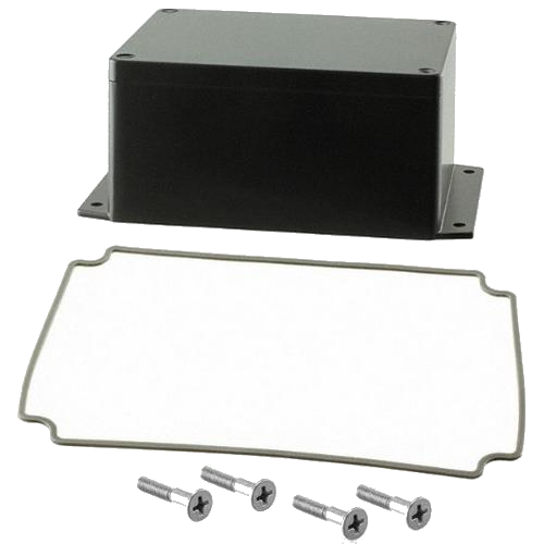 Bud Industries, AN-2855-AB, IP68 Die Cast Aluminum Enclosure with Molded Mounting Bracket, Nema 6P, Black Powder Finish
