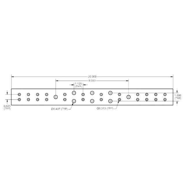 Burndy CB14220S 1/4" x 2" x 20", S-Hole Pattern, Ground Bar Only