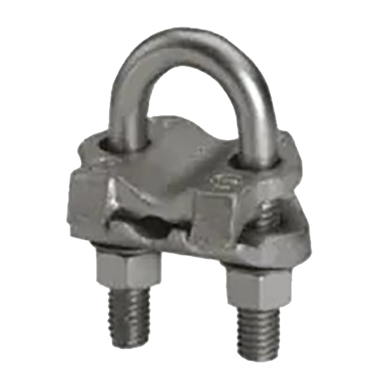 High copper alloy ground connector for joining a range of cables, parallel or at right angles to rod or tube. Especially good for fence posts. High copper alloy cast body with Durium™ U-bolts, nuts, and lock washers, permit real connection to be buried in ground or concrete without danger of corrosion.