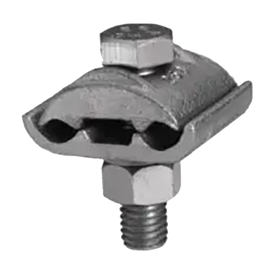 • High copper alloy ground connector for joining a wide range of two parallel cables to a 1/4" thick bar.