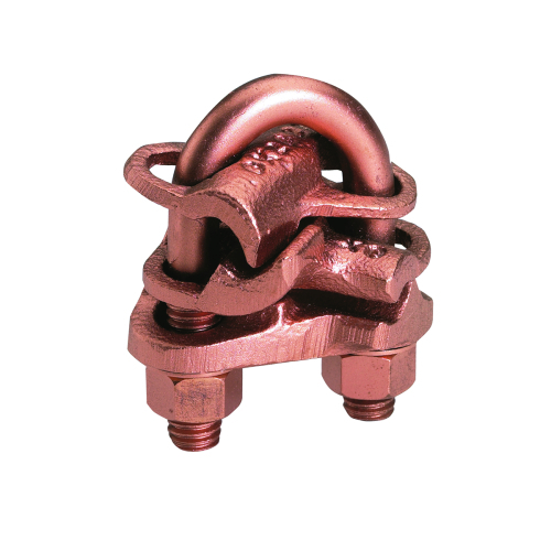 Cast Cu Alloy Ground Connector, 2/0 AWG Sol - 250 Kcmil( A), #8 Sol - #4 Str AWG( AA ), 1/2" Rod Dia., Bronze H/W