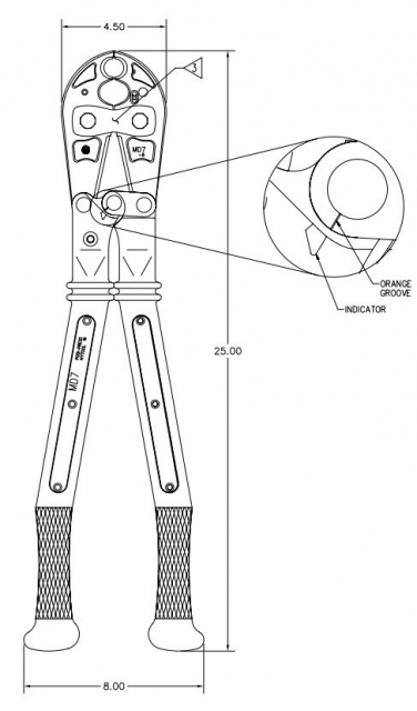 Burndy, MD7, Hytool Hand Operated Crimping Tool with Permanent BG & D3 Grooves & Composite Handles
