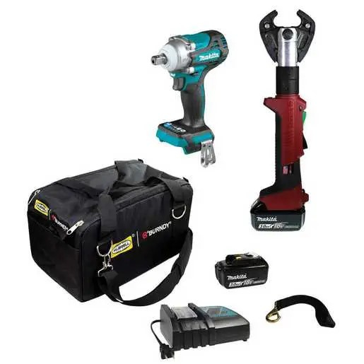 Burndy, PATMD20003AB, In-Line 6-Ton Tool with D3 Snub-Nose and Makita XWT15Z 1/2" Square Drive Impact Wrench