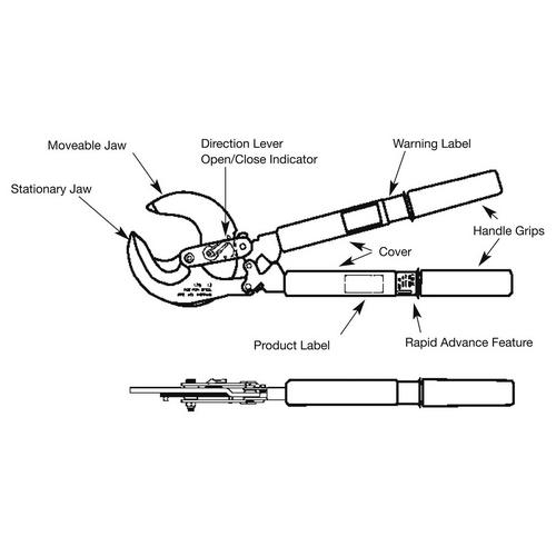 RCC1000, Ratchet Cable Cutting Tool, 1000 kcmil Copper(Max), 1000 kcmil Aluminium (Max)
