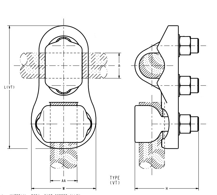 Burndy, VT2C2C, Varitap High Alloy T-Connector, Bolted, Cable to Cable, 2.31"