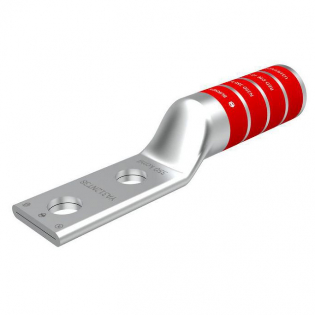 Burndy, YA312NT38, 3/8" Compression Terminal, Red Color Code, 1" Hole Spacing