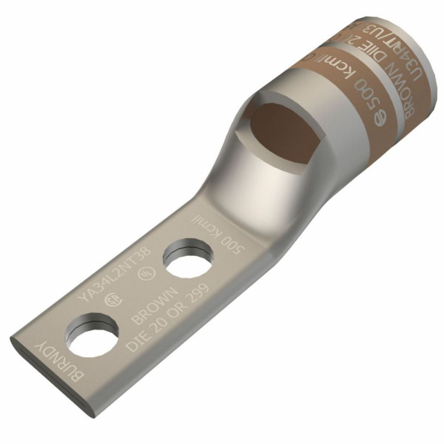 Burndy, YA34L2NT38E16, 3/8" Standard Compression Terminal, 500 Kcmil, 1-3/4" Hole Spacing
