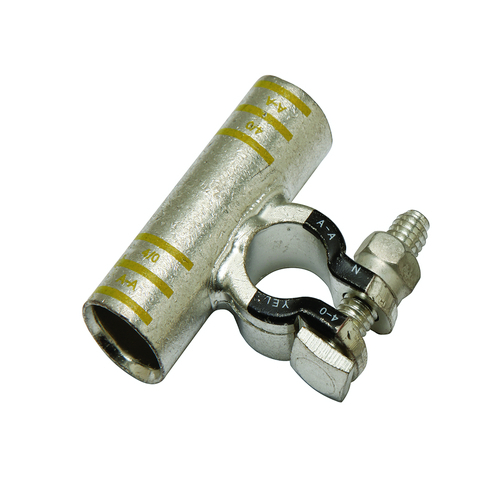 Burndy, YAEBAF28NTN, 550000955 Cu T Type Battery Post Connector Terminal, 4/0 AWG, 2.36" L, 1.97" W, Yellow.