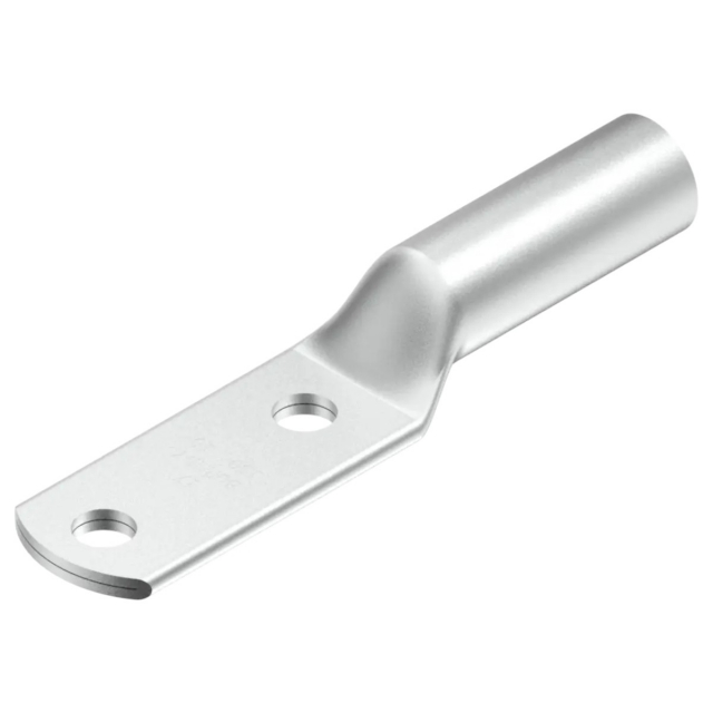 • Cu Compression Metric Lug, 2 Hole, W/o Inspection Window, 185 mm, M12 Stud, 44.5 mm Spacing, Long Barrel, 52 mm Wire Strip Length.