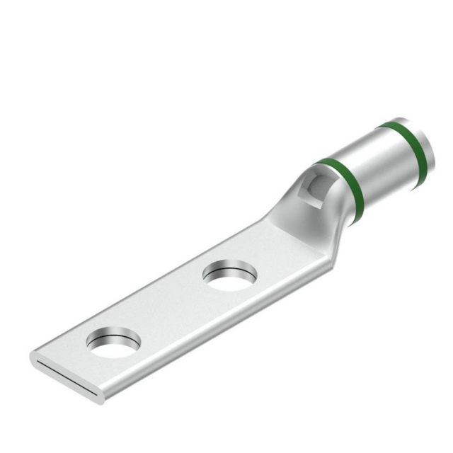 1 Flex G,H,I,K,M,DLO, 1 AWG (B/C) CU, Two Hole, 3/8 Stud Size, 1 Hole Spacing, Standard Barrel, Inspection Window, Internal Chamfer, Tin Plated, UL/CSA, 90°C, Up to 35kV, Green Color Code, 11 or 375 Die Index.
