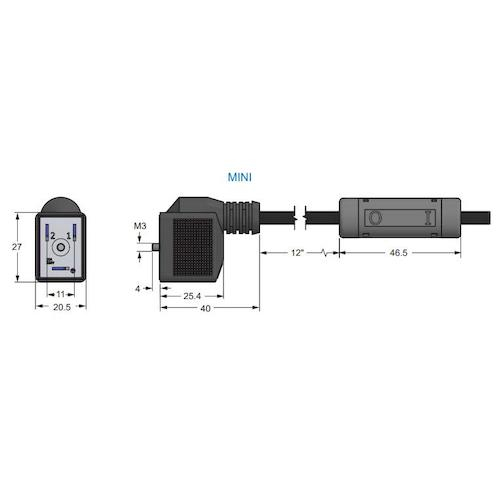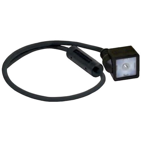 The Canfield Connector 5FMSD Series is a solenoid driver circuit (Coil Saver) tucked away in in-line electronics package coupled with 5F all-molded DIN solenoid valve connector/gasket/cord assembly for ISO DIN Style "A" EN175301-803 (Formerly DIN 43650), MINI and 9.4mm (Industry Standard) and 8mm Sub-Micro (DIN 43650 "C") connectors. The integrated gasket design boasts an IP67/NEMA 6 rating and makes it impossible to lose the gasket. The Coil Saver enhances solenoid valve function as it lowers the wattage of solenoid operators of solenoid valves as it first applies a full voltage to ensure strong pull-in then drops the current when the solenoid magnetic circuit is most efficient and lowers wattage during long term energization or repeated cycles and lower RMS wattage. The fully encapsulated enclosure design allows for the Coil Saver to be isolated from the heat of the solenoid as well as installed upstream, away from the coil connector that is designed for this heat. The in-line package can control input DC voltage and supplies PWM VDC to the coil. The low profile "straight-line" interface/cord configuration allows for installation in many limited space applications and is proudly made in the U.S.A.