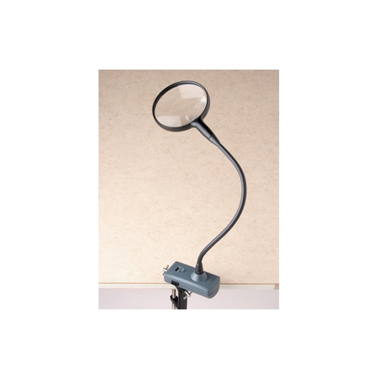 The CL-65 MagniFlex™ from Carson Optical is a lighted, fully-adjustable, flexible arm Hands Free Magnifier that attaches to your table-top for convenient Hands Free use. Its large 2x power lens gives you a sharp, distortion-free view, and 3.5x power spot lens allows you to see even the finest details with ease. Three super bright LED lights allow for use in low-light conditions. This Magnifier operates on 3 AAA batteries (not included) or supplied 4.5v DC adapter.