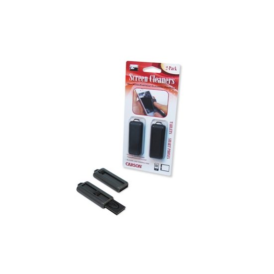 The CS-50, C6® Screen Cleaner from Carson Optical, contains our Dry Nano-Particle Cleaning Formula that wipes away smudges, grime and fingerprints with ease. The Soft, retractable pad is safe and easy to use on all screens. It also includes a built-in ring on the body which allows easy attachment to Keychains, Carabiners, and other Clips.The C6® Compact Lens Cleaner is perfect for cleaning Tablets and Smartphones. The CS-50 Screen Cleaner comes in a convenient 2-pack.US Patent D689,253, European Patent 001332431-0001/001332431-0002
