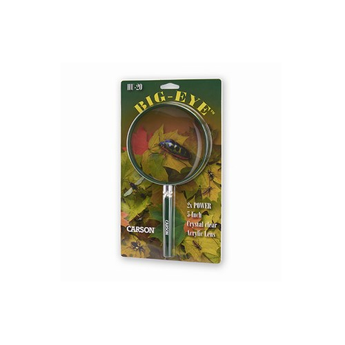The HU-20 BigEye™ from Carson Optical has a 5" over-sized viewing lens and is likely the biggest of any Hand Held Magnifier available! It may be oversized yet it is still lightweight thanks to its high quality crystal-clear acrylic lens. The BigEye™ is perfect for viewing just about anything…including insects, rocks, foliage or anything found in nature.