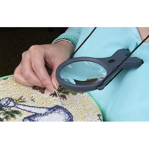 The LK-30 Lighted MagniLook™ is the magnifier that's always ready! This magnifier boasts a 2.5x power crystal-clear acrylic lens, 4.5x power spot lens, built-in ultra bright twin LED Lights and adjustable neck strap. The MagniLook™ magnifier can be used as both a pendant magnifier and as a Hand Held Magnifier. Simply unclasp the MagniLook™ magnifier from the neck strap and it can be used hand held. Having trouble remembering where you put your Magnifier? The Lighted MagniLook™ magnifier is perfect for you. Wear the MagniLook™ magnifier around your neck and you’ll know where to find it when you need it! The Lighted MagniLook™ magnifier is ideal for crafts, hobbies and everyday use.