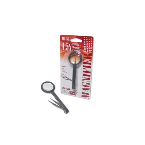 The MG-55 MagniGrip™ from Carson Optical is a compact 4.5x Magnifier with attached fine-point tweezers. This Magnifier/tweezers combo is perfect for all those "little" jobs... when you need an extra hand! It is extremely lightweight and can be used as an aid for everything from hobbies and crafts to getting out that pesky splinter. Also available in a lighted version- Lighted MagniGrip™
