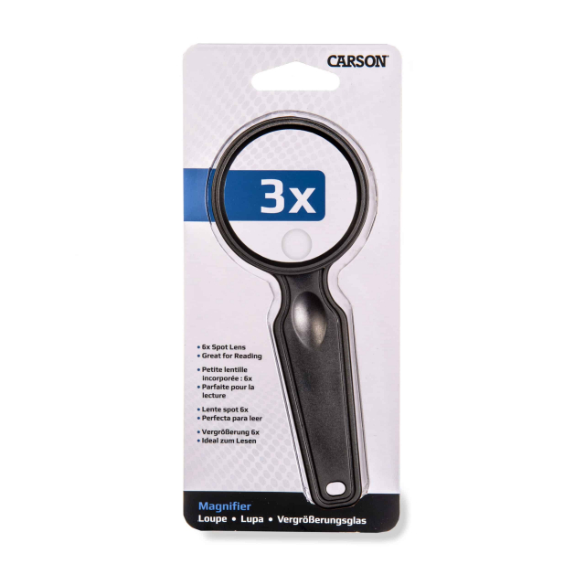 The DS-50GL, 3x Handheld Magnifier with 6x Spot Lens has been designed with simplicity in mind. Its top mount thumb rest promotes a more natural hand position, creating balanced weight distribution between lens and handle. The lightweight design is perfect for extended reading times. It features a comfortable, ergonomic handle design with thumb groove. The full rim protects the magnifier, making it the perfect accessory for reading, hobbies and crafts and everyday activities.