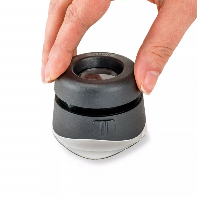 The LED VersaLoupe™ is a 10x power, lighted, focusable, dual lens, stand loupe magnifier. Easily focus by twisting the eyepiece ring, with crystal-clear dual acrylic lenses delivering ultra-precise image quality. Featuring 5 powerful built-in LED lights, it illuminates your subjects with ease.