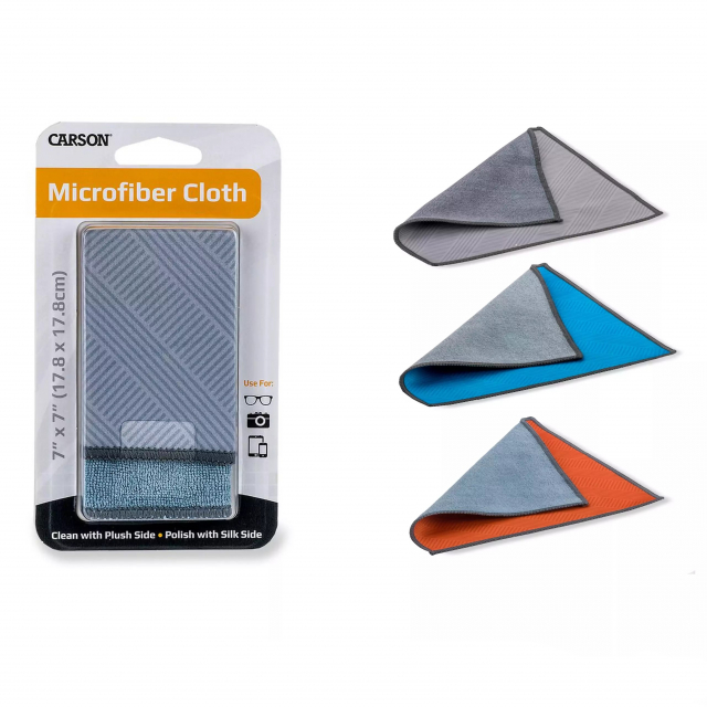Carson Optical, MF-11(06)AS, MicroFiber and Silky Cleaning Cloth, Assorted Double Sided Lens Cleaner, Random Color
