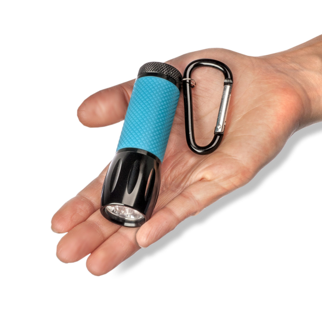 The SL-44, UVSight Pro UV Flashlight is The best UV flashlight for low-light use. It has nine UV LED bulbs and two brightness settings to accommodate various needs. The glow-in-the-dark, blue rubber grip ensures you'll never misplace the UVSight Pro UV Flashlight. It is made of aluminum alloy which means its lightweight yet durable. This flashlight is great for inspecting currency, detecting pet stains, auto leaks, pests such as scorpions & more. It comes with a handy attached carabiner clip, so you can clip it to your backpack, tuck it away in your pocket, or just keep it in a glove compartment, kitchen drawer or tool box. It is extremely portable and easily accessible so you'll have it wherever and whenever you need it. Uses 3 AAA batteries (not included).