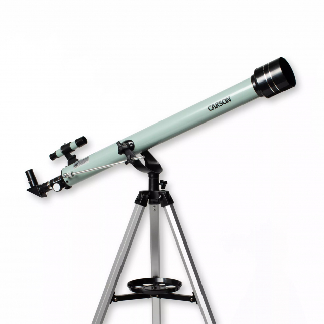 The SR-100 Refractor Telescope from Carson is a user-friendly entry-level telescope with a 60mm objective lens and up to 675x magnification. It's perfect for beginners interested in astronomy, providing clear views of the moon and stars. The compact design makes it easy to transport, while the adjustable tripod ensures stable viewing. The SR-100 is ideal for those looking to start their stargazing journey with a reliable and easy-to-use telescope.