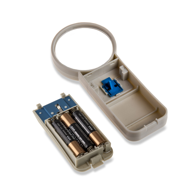 The Illuminated Handheld 5x Power 2.5" Aspheric LED Lighted Magnifier SV-50 is a 5x aspheric magnifier. Aspheric lens magnifiers allow for increased magnification and image clarity while greatly reducing edge to edge distortion. Its 2.5" crystal-clear acrylic lens allows it to be lightweight enough to use for everyday tasks. The SV-50 is a great low vision aid and assists in reading small print. It features an ultrabright LED light to brighten your viewing area. Uses 3 AAA batteries (not included).