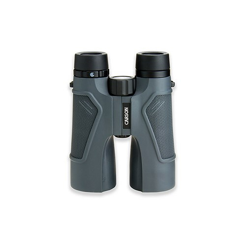 The TD-050™ from Carson Optical is an 10x50mm Full-Sized 3D Binocular combining phase-coated prisms with our HD optical coating technology to ensure the brightest, sharpest images possible. TD-050™ Full-Sized 3D Binocular is ideal for use as Hunting Binoculars or Birding Binoculars.Rubberized armor coating makes this Full-Sized 3D Binocular rugged and shock proof. The body is nitrogen purged and O-ring sealed making them waterproof and fogproof. Extra long eye relief with twist down eyecups make this Full-Sized 3D Binocular perfect for eyeglass wearers. The precisely placed thumb grooves, “just right” texturing and all-over lightweight body ergonomics make the 3D Series Binoculars perfect for long hunts or bird watching expeditions. The TD-050™ are also perfect outdoor activities or sporting events.