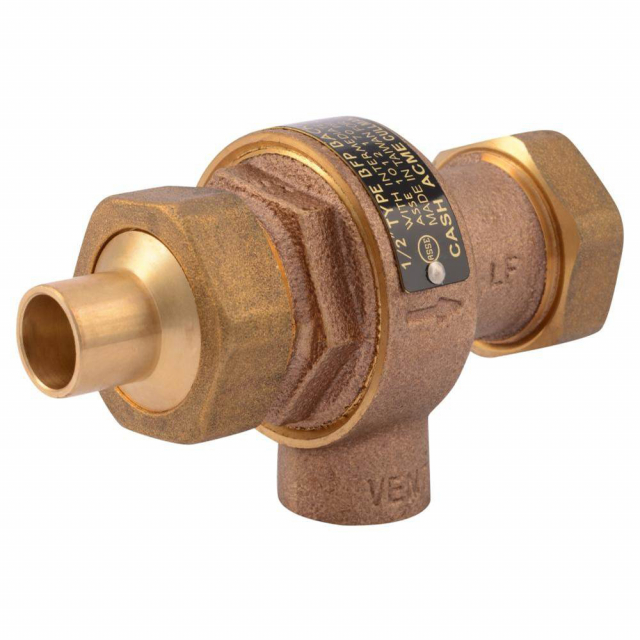 Lead Free Continuous Type Backflow Preventer, Copper Sweat Union Inlet & Outlet