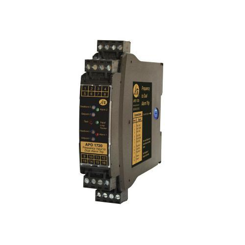 The APD 1720 accept a frequency input and provides a visual alarm indication and alarm relay contact outputs.