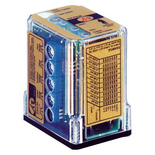 Input, output, excitation and zero offset are field configurable, via external rotary and slide switches. Common ranges are on the module label. Offsets up to ±100% of span can be used to cancel sensor offsets or non-zero deadweights (taring). Noninteractive zero and span simplifies calibration.