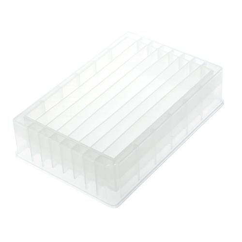 Reservoirs are designed to assist in repetitive or robotic liquid transfer. Trough Bottom designs promote funneling of liquid to maximize reagent recovery by pipet tips. Low profile is ideal for small volume robotic tips 229561 & 229562: Multiple wells allow for dispensing of various reagents. Storage possible at -80°C. Polypropylene offers a low binding surface to prevent samples from sticking to the side walls during elution, and is chemically inert for combinatorial chemistry applications.