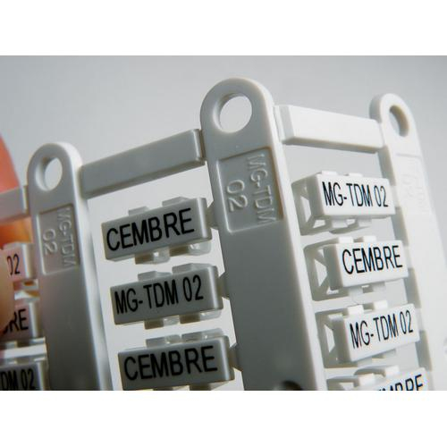 MG-TDM one piece tags require no transparent holders and are mounted on cables via the two range-taking apertures. Each sheet of media has 66 tags and takes around 10 seconds to print. Tags are easily removed from the stems and partially printed sheets may be re-used to avoid wastage.