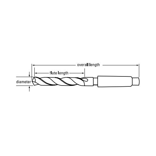 Cleveland, C12670, .6875" Steam Oxide HSS Taper Shank Taper Length Drill, 10" Length