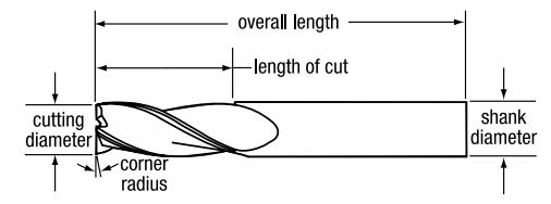 Cleveland, C60394, CEM-EMS-3 Series .75" x .75" x 1.625" x 4" 3-Flute High Performance Bright Mill, .03" CR