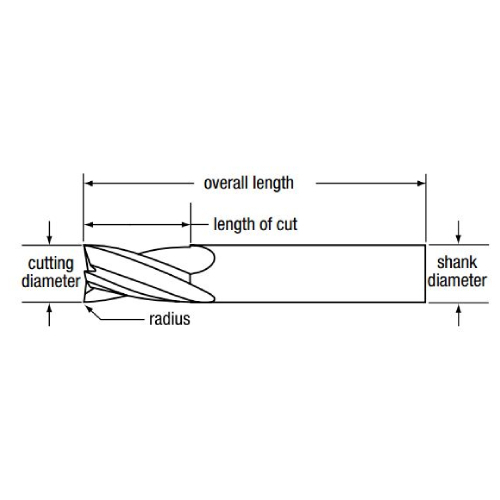 Cleveland, C60596, CEM-V2-5R Series .75" x .75" x 2.25" x 5" 5-Flute High-Performance Bright End Mill, .03" CR