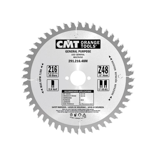 CMT Orange Tools, 291.210.36M, 291-Series Circular Saw Blade for Portable Machines 210mm x 210mm